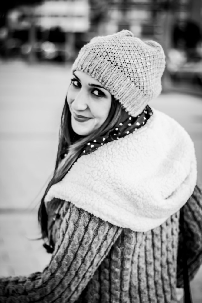 Los gorritos y el tricot son unos de mis indispensables, y para el outfit de hoy decidí combinarlos con mis sneakers negras y un fular de topos que resaltara de los colores neutros del look.