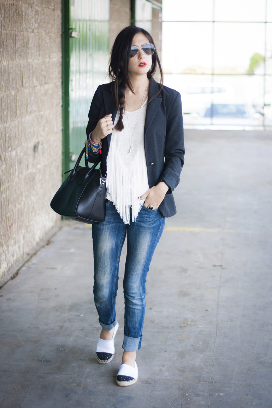 ¡Por fin refresca y he podido sacar los jeans del armario! eso me da muchÃsima felicidad, ¡los echaba tanto de menos!Asà que hoy os traigo un look todoterreno, que lo mismo nos vale para salir a pasear, a una comida informal o incluso a un dÃa de trabajo, combinando las que son para mà tres prendas imprescindibles en cualquier fondo de armario: jeans, camiseta blanca y americana. Con este mix siempre acertaremos.